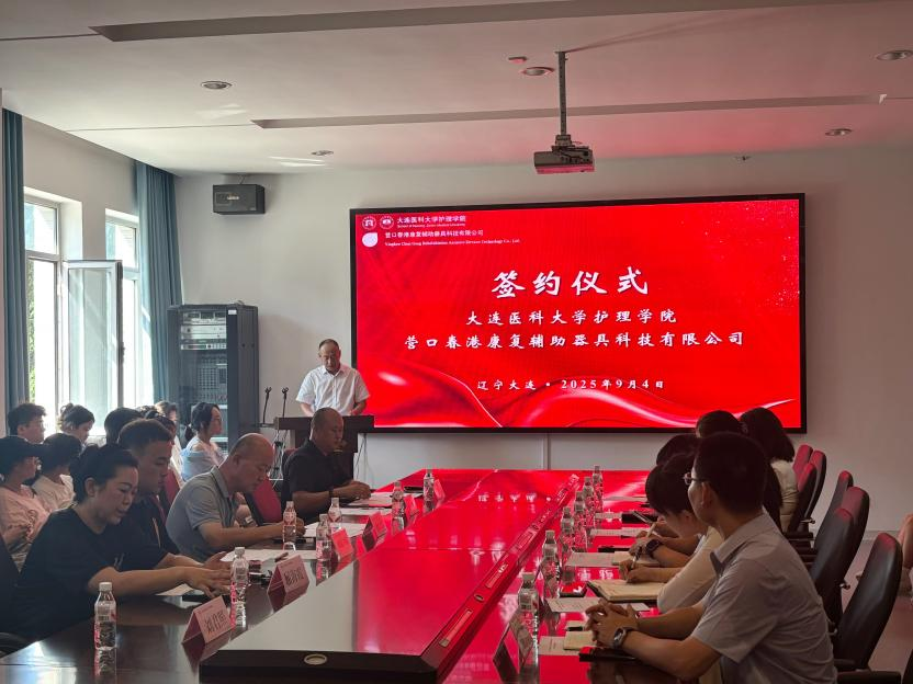 本次签约圆满成功,大连医科大学护理学院将与营口春港康复辅具科技有限公司携手共进,以产教融合新路径,共绘护理教育与康复产业协同创新、服务健康中国的新篇章。